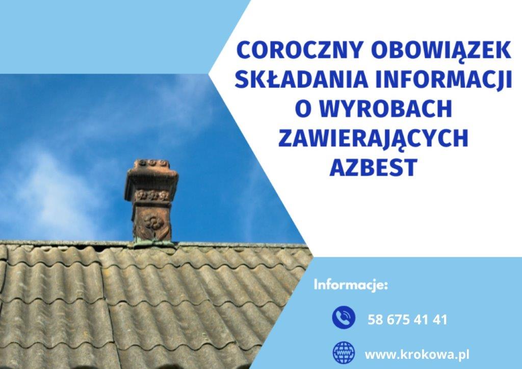 Ø mieszkańcy Gminy Krokowa (osoby fizyczne, nieprowadzące działalności gospodarczej), wykorzystujący wyroby zawierające azbest – składają informację do Wójta Gminy Krokowa