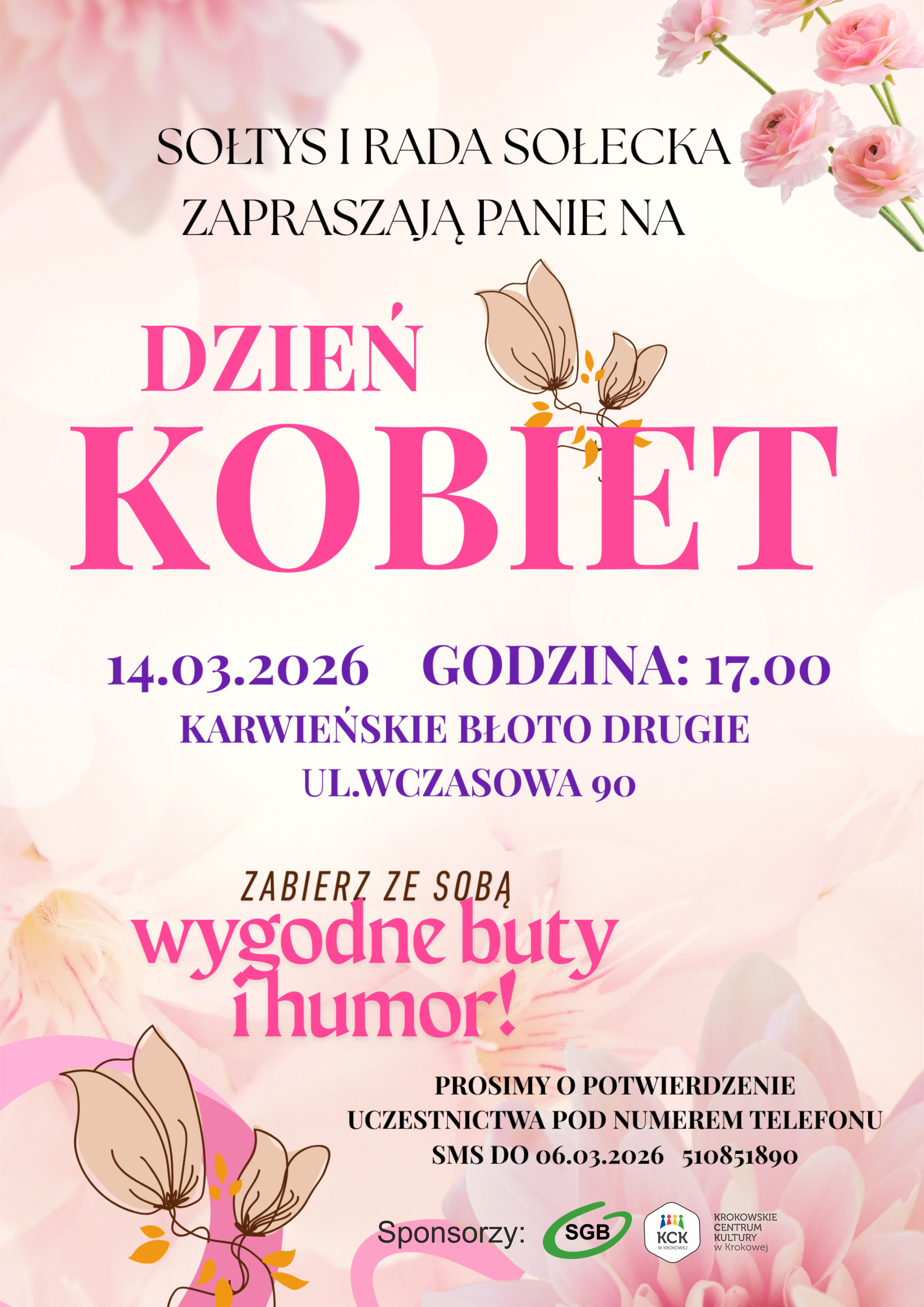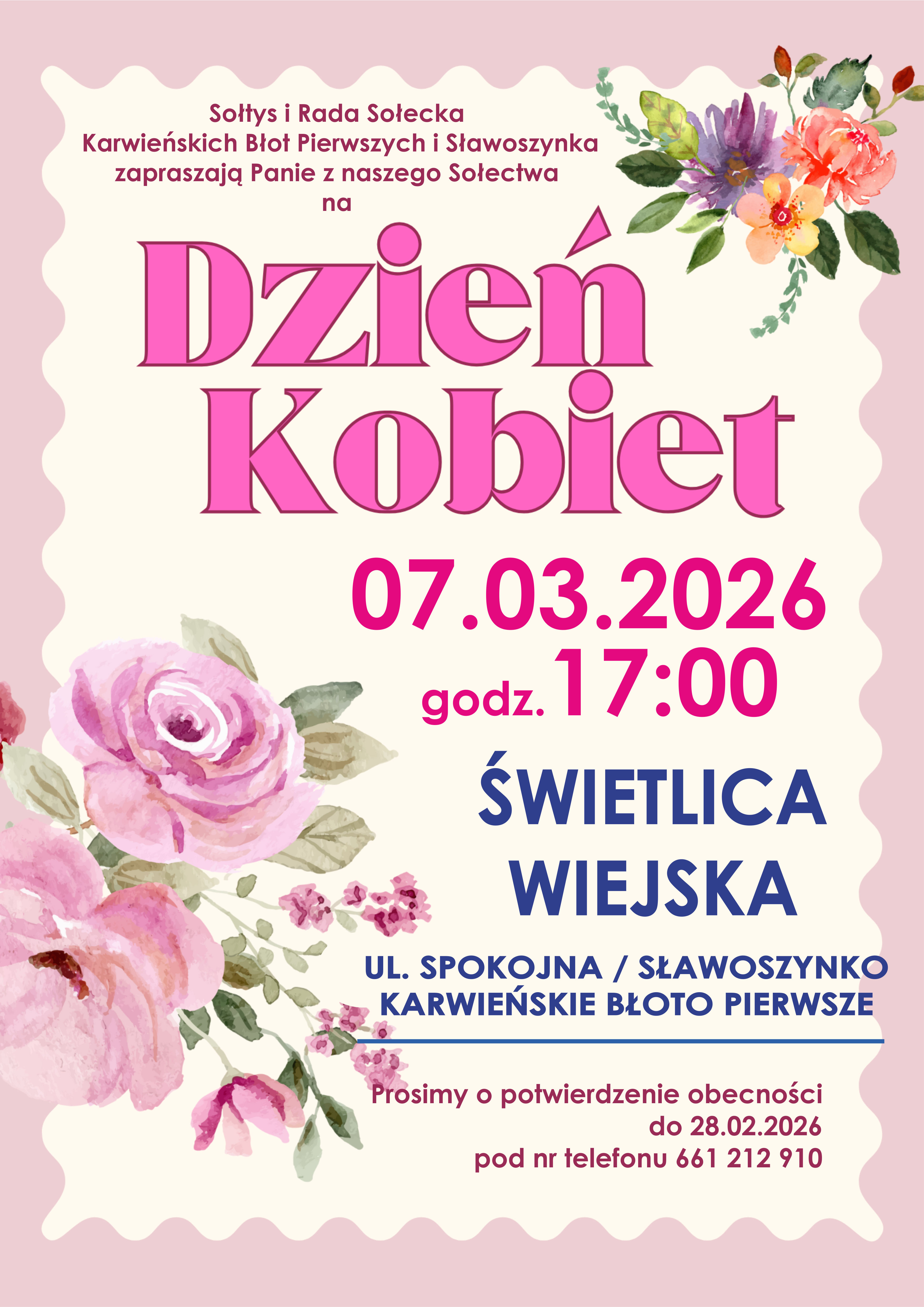 W imieniu Sołtysów i Rad Sołeckich z radością zapraszamy Panie na obchody Dnia Kobiet, które w tym roku organizowane będą w świetlicach wiejskich. To doskonała okazja do spotkań, wspólnej zabawy i celebrowania kobiecej siły oraz lokalnej wspólnoty.